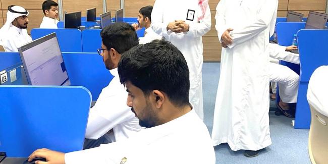 سعادة رئيس جامعة الحدود الشمالية المكلف أ.د.فراس بن محمد المدني، يتابع سير الاختبار المعياري لطلبة كلية إدارة الأعمال المتوقع تخرجهم، والذي يهدف إلى قياس مخرجات التعلم وفقاً